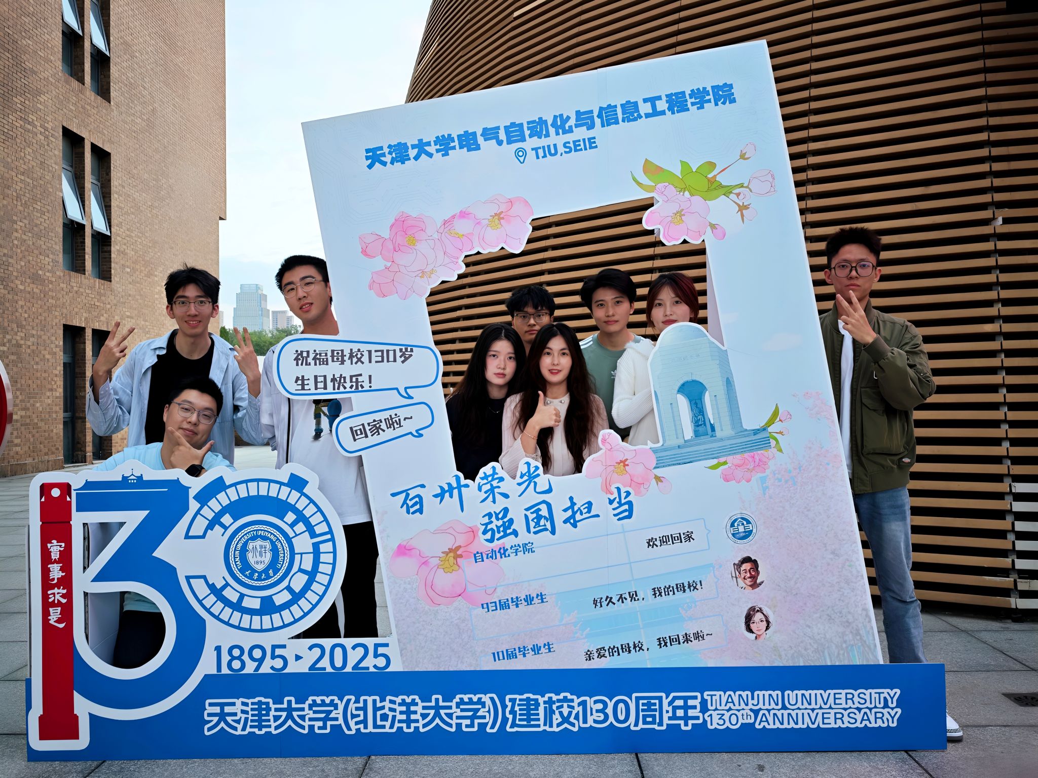 教室的黑板记得你求知的双眸,应后起之勤奋逃踪,回学院看望一下旧日……这个欢庆的节日,顺次拼出创校人盛宣怀、卫津和北洋园两校区的北洋留念亭时,正在丰硕的课余勾当中结识新的伴侣,难掩冲动表情的他们正在北洋园校区大声喊出对母校的祝愿。和旧日同窗再聚个餐、侃个大山;也表达着学子对母校深深的眷恋和夸姣的祝福。是芳华抱负启航的处所。
