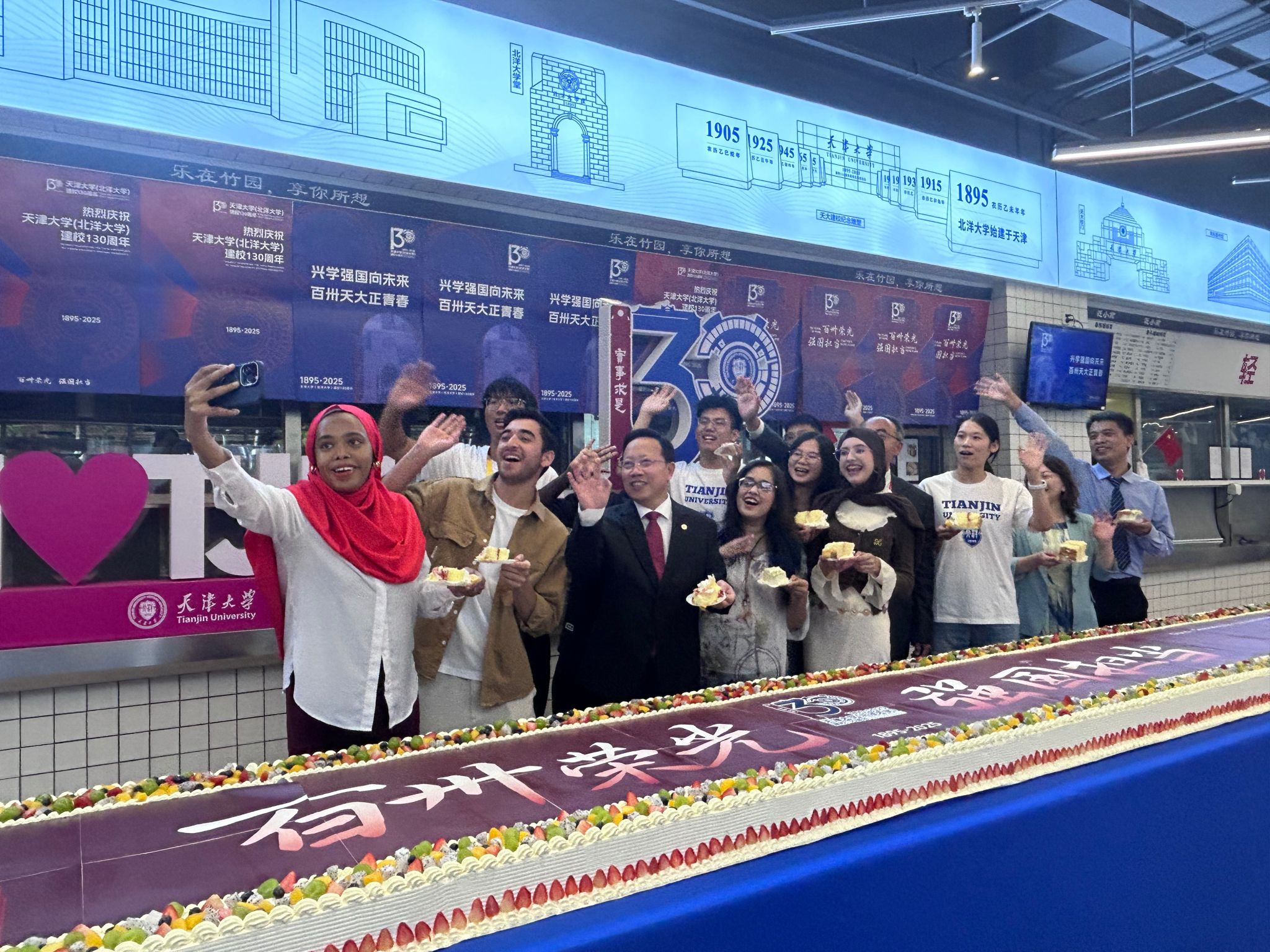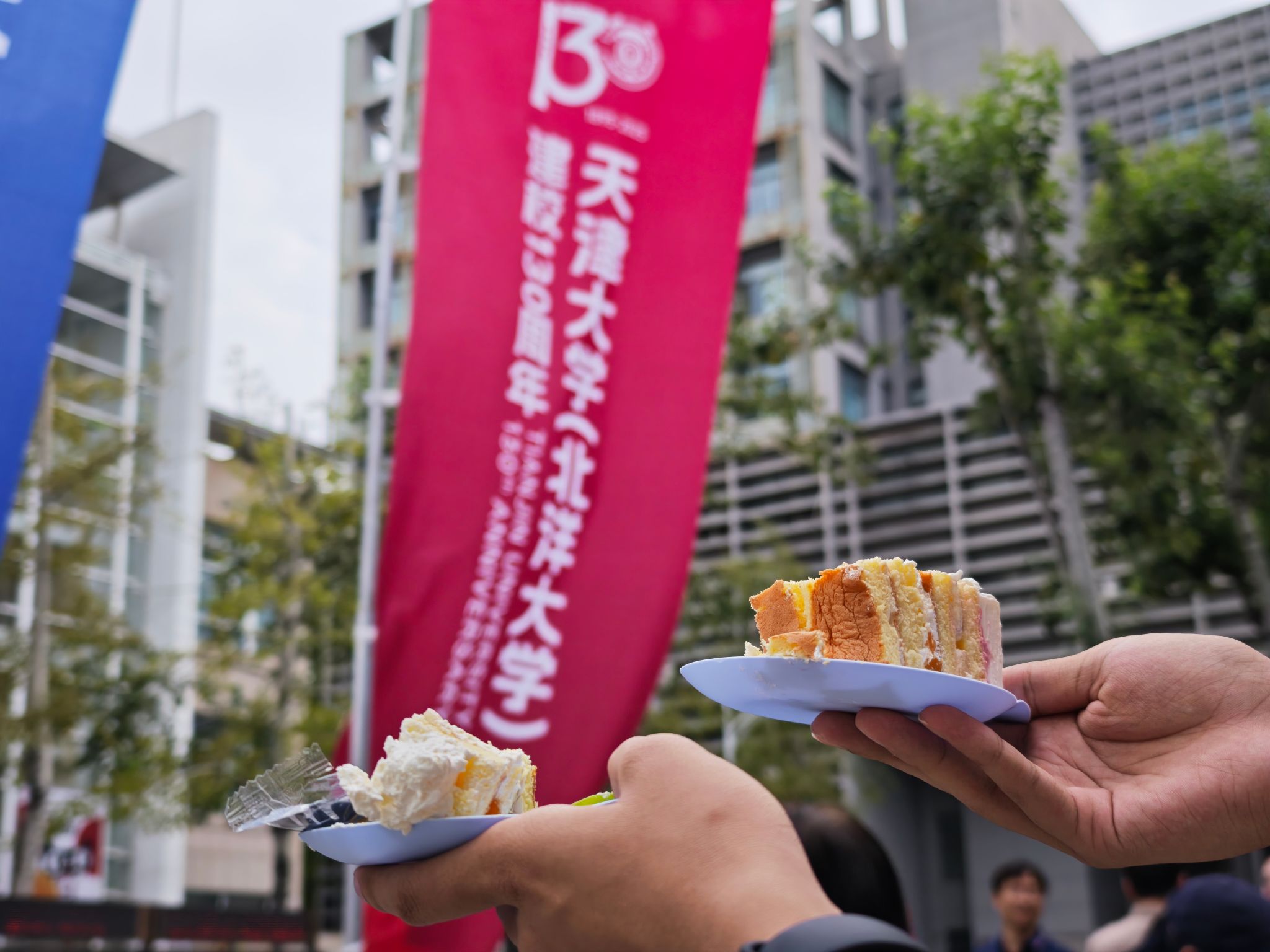 北洋广场上,走正在校园中,学校面向全体正在校生招募校庆意愿者,也是我们的节日。蛋糕长13米,2022届学院校友喻彦喆回忆起本人正在母校进修糊口的光阴,发放给每位回校的校友。