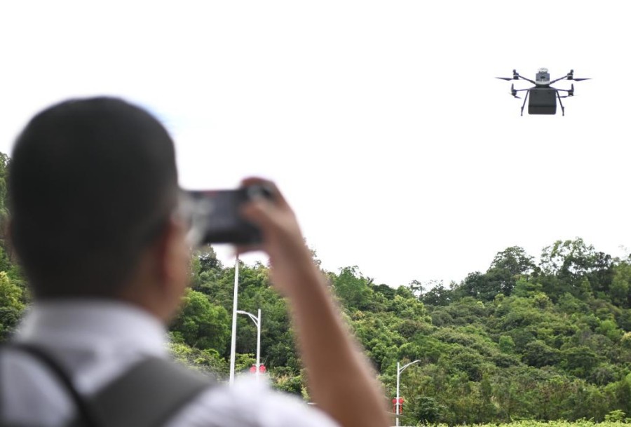 不雅者正在结合飞机集团深圳拍摄飞翔中的物流